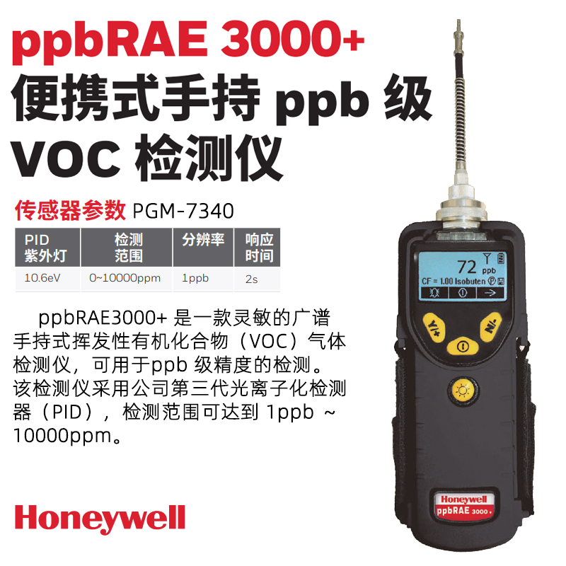 霍尼韦尔ppbRAE 3000+便携式手持ppb级VOC气体检测仪华瑞PGM-7340